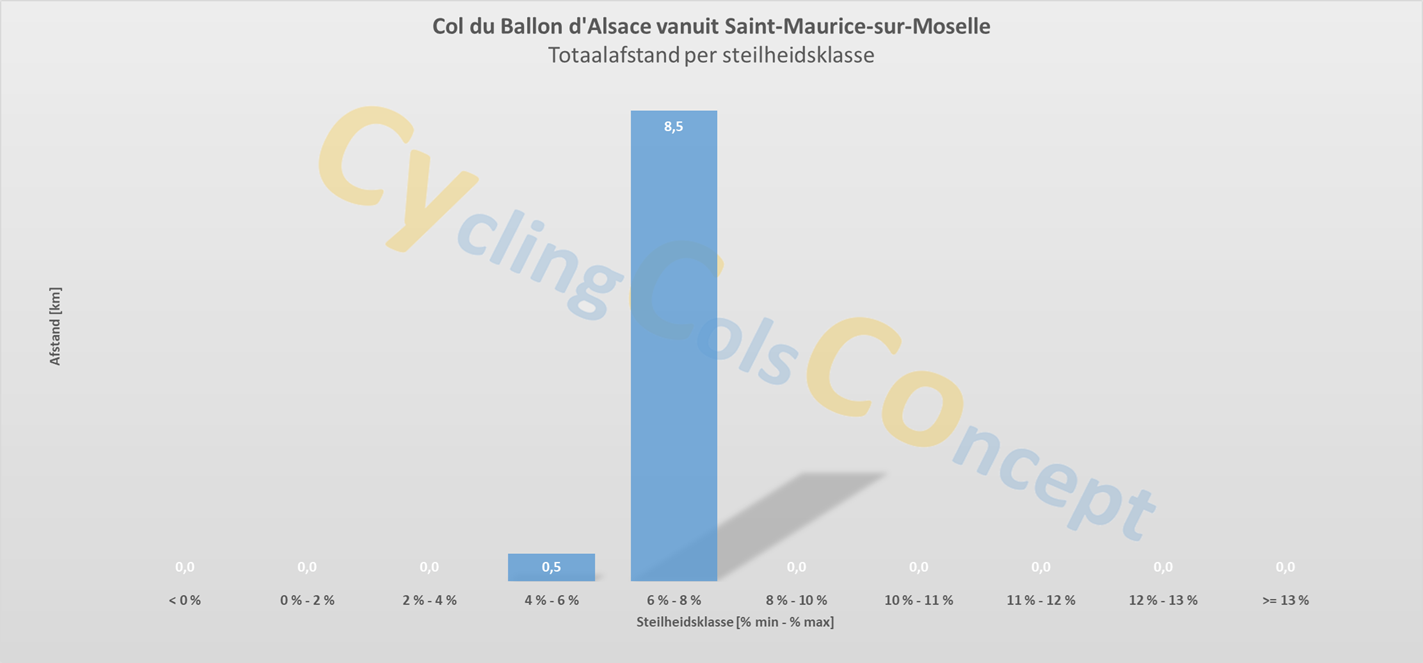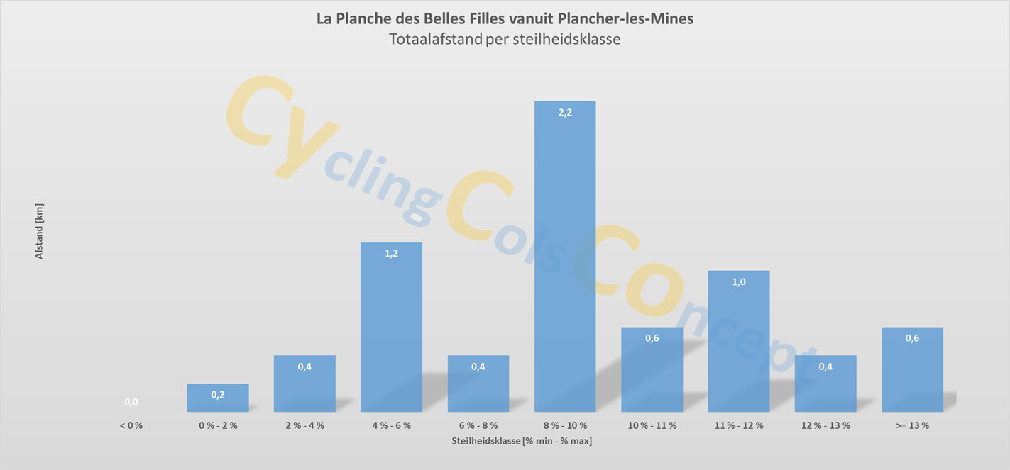 De Col-Steilheidsklassen van de vier cols worden opeenvolgende hieronder afgebeeld: