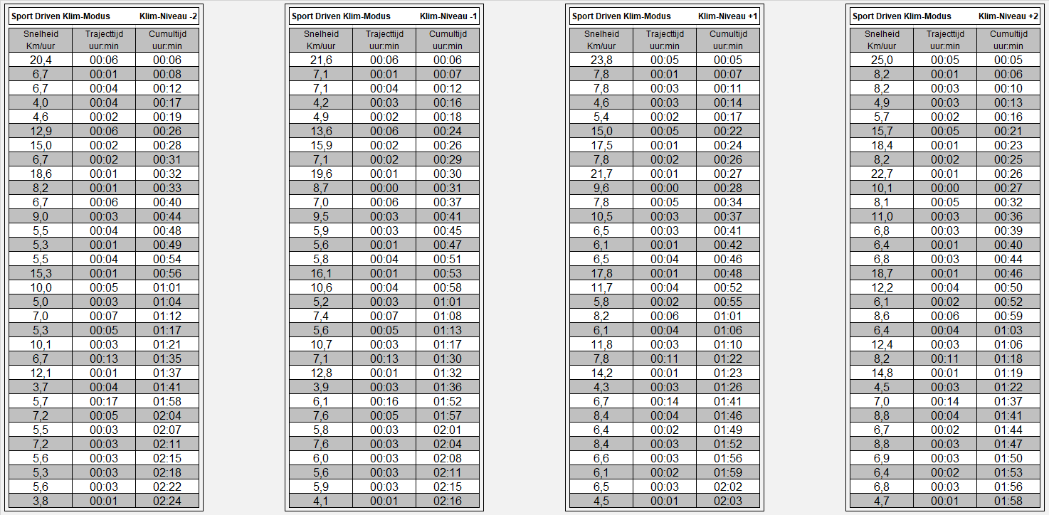 Binnen elke "Klim-modus" differentieert CyCCo meteen ook naar vijf "Klim-niveau's":