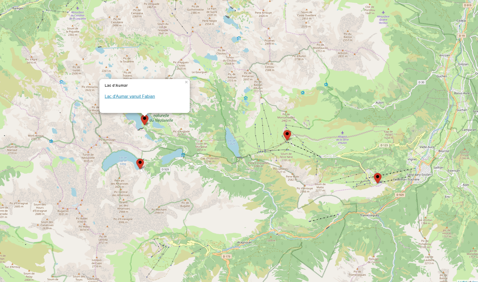 Fabian: de vertrekplaats, en de ruime omgeving rond het klim-doel: Lac d'Aumar.